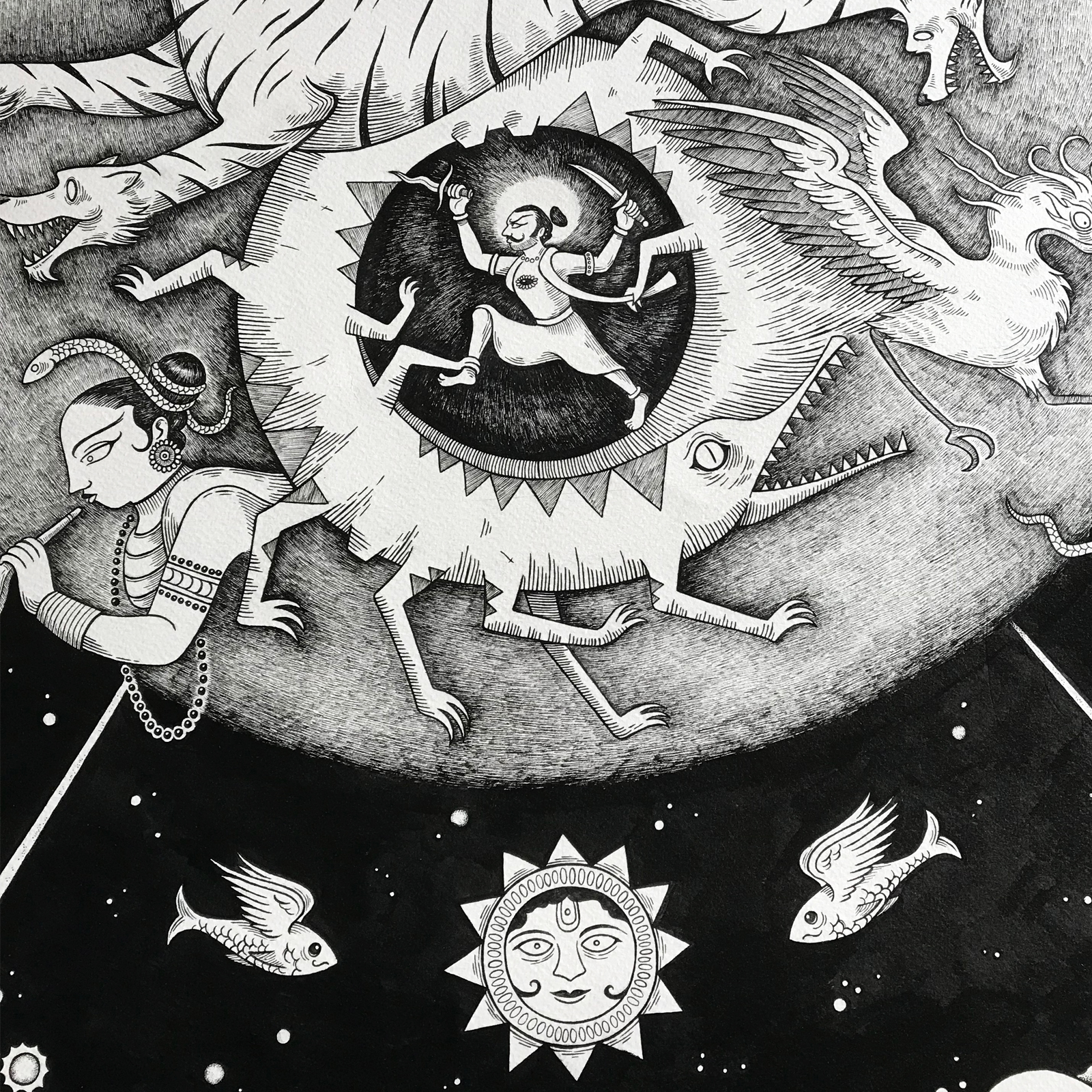Hand drawn A1 pen and ink drawing.